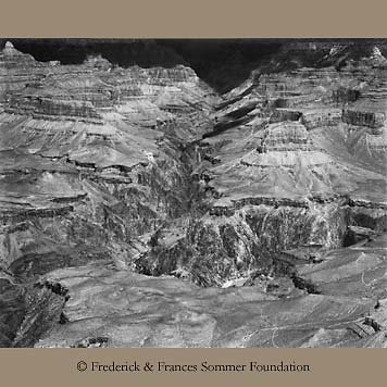 Sommer had purchased a longer lens, a Turner Reich Triple Convertible with enough coverage at infinity, to take distant landscapes by the winter of 1938. He used this lens to photograph at the Grand Canyon, about two hours north of Sommer's home in Prescott. He traveled there, probably with his friend Faurest Davis, in 1940 and 1942 taking pictures from various lookout points along the South Rim. |