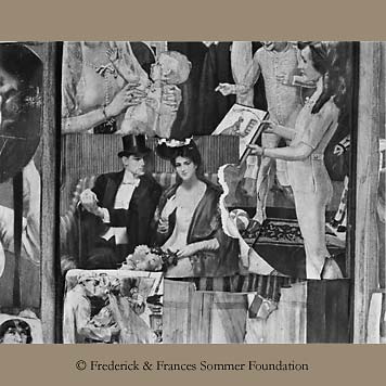 The dominant photographic community in the United States in the 1940s was promoting "straight" photography and often criticized Sommer's images as manipulated or contrived. When Frederick Sommer found this arrangement of illustrations from catalogs and magazines attached to the wall inside an abandoned miner's shack in 1947, it was the perfect opportunity to make a "straight" photograph of something both found and arranged. This exemplified his point that in photographing anything we are always in some way arranging ourselves in relation to what we are serving as subject matter. |