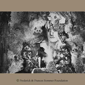 Prints of this small image were offered by the Museum of Modern Art in New York as part of their Christmas sale in the 1950s (see New York Times, Dec. 2, 1951). Sommer used slats for a brief period of time that fit grooves inside his 8x10 inch camera to mask portions of the projected image creating non-standard sizes. He worked in this way to make other images, such as "All Children Are Ambassadors, 1950" where the negative is effectively 5 x 8 inches. "Circumnavigation of the blood is always Circumnavigation of the world," Frederick Sommer: An extemporaneous talk at the Art Institute of Chicago, October, 1970 (published in Aperture 16:2 1971). |