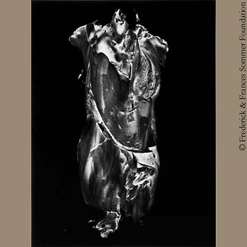 Paracelsus (c. 1493-1541) was an alchemist, physician and philosopher who suggested in order to correctly diagnose an illness one would have to examine the patient. Frederick Sommer's photograph was made from a paint on cellophane negative created in 1959. Slightly pigmented transparent medium was applied to a ~ 3 x 4 inch piece of clear cellophane, in quick moves and then manipulated (prodded and peeled) as it dried and the viscosity changed. To support spontaneity and keep from getting too attached or fussy, paint on cellophane negatives were produced 10-20 at a time. This photograph invokes analogies to classical sculptural fragments and appears to some viewers to reveal the inner workings of the human torso. Two excellent websites about Paracelsus at: National Library of Medicine and Wikipedia. |