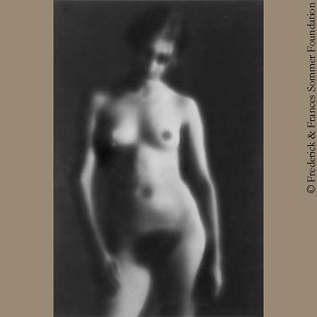 This nude, in a contrappasto position, was taken in focus and then printed out of focus. Frederick Sommer worked with his model, Lee Nevin, the daughter of a good friend and neighbor, in his studio between 1960-1965. |