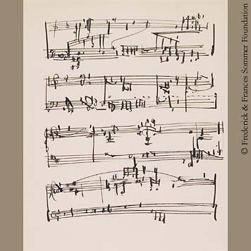 In 1934, Frederick Sommer's wife, Frances, was hired by the State of Arizona and sent to University Southern California, for six-months of training in social work. Frederick accompanied his wife to Los Angeles. When she was in school, he spent time in the various libraries affiliated with the City of Los Angeles Public Libraries. In a library dedicated to music, Sommer encountered original musical scores, drawn by the composers.